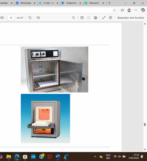 functie: drogen chemicaliën, droogstof en kweken bacterieculturen op agarbodem