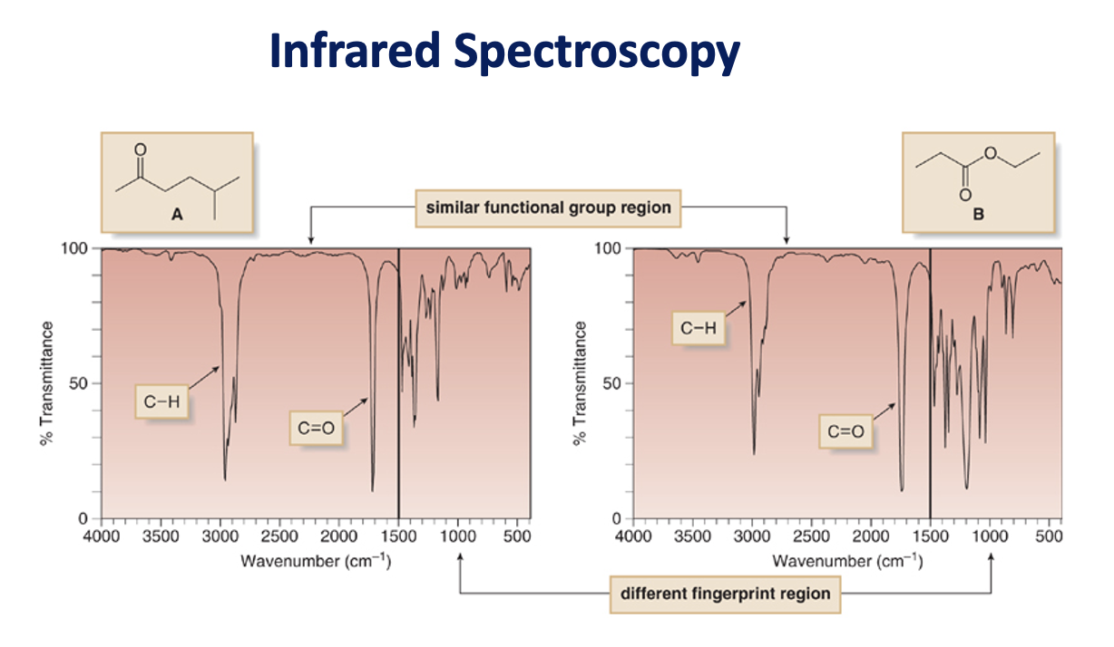 The fingerprint region -- used for structure elucidation by spectral comparison.