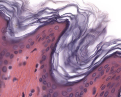 Commonly found in superficial skin layer; contains filaments of the protein keratin