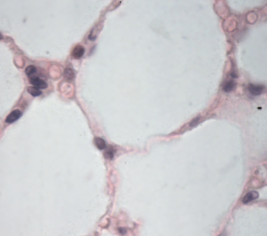 Commonly found in alveoli and lining of blood vessels; nucleus is centrally located