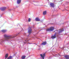 Secrete fibers and ground substance of matrix in loose and dense connective tissue, lots of collagen