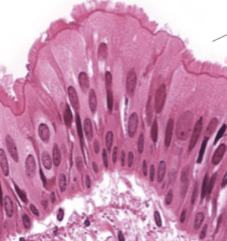 Commonly found in duodenum; microvilli found at apical surface to increase surface area/absorption
