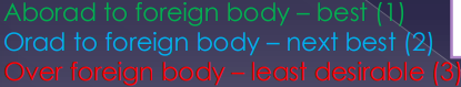 Tx: Endoscopic retrieval (#1), Push FB into stomach (gastrotomy), Esophagotomy