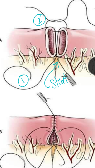 Sut: Interrupted, tension-free closure, Monofilament (PDS 3-0 or 4-0)