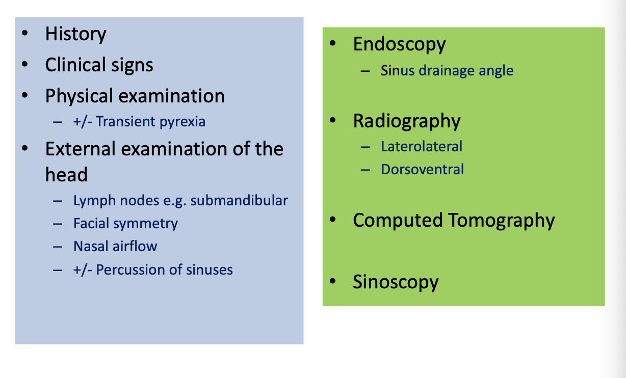 +/-nasal discharge, head shaking