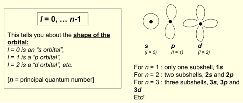 Angular Momentum Quantum Number (l) – shape of the orbital