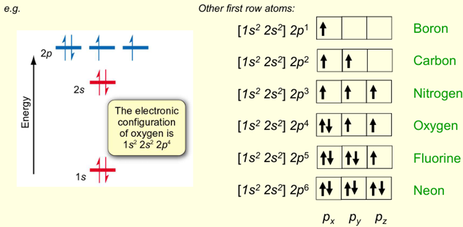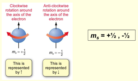 A maximum of two electrons can share each orbital, with the same values of n, l, mI but different spin (ms = +1/2 and -1/2)