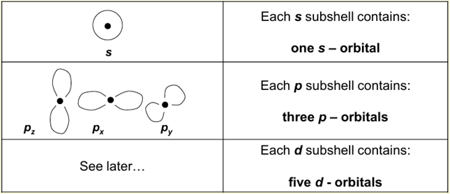Each shell can have more than one subshell, labelled according to their shape: s, p, d...
