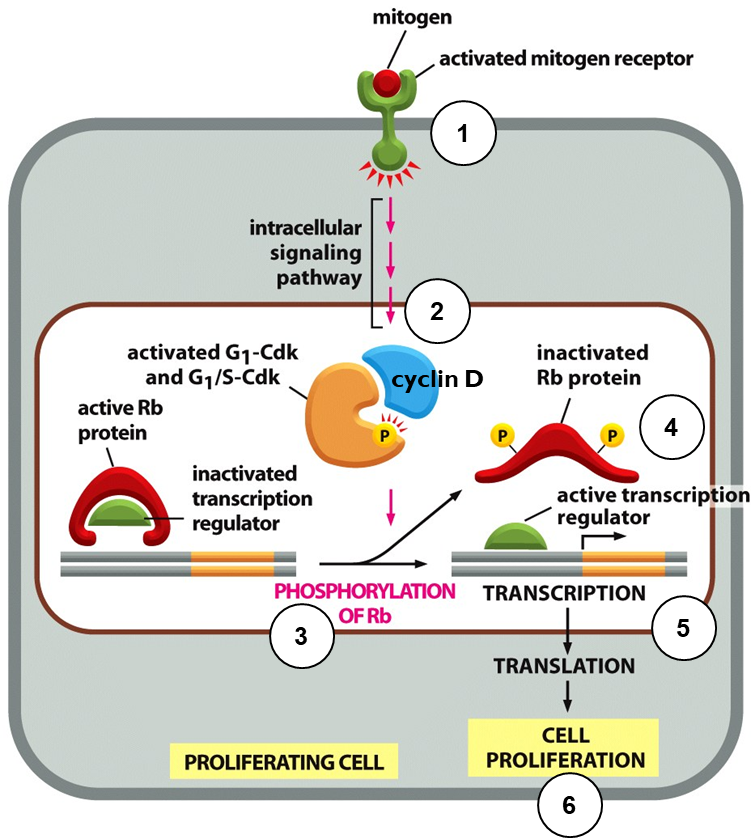 1.Mitogens bind to cell surface receptors and activate downstream signalling pathways