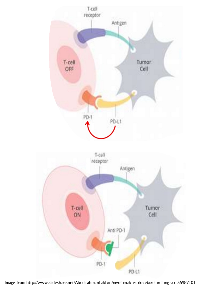 •Nivolumab (human) binds to PD-1 preventing PD-1L binding to it