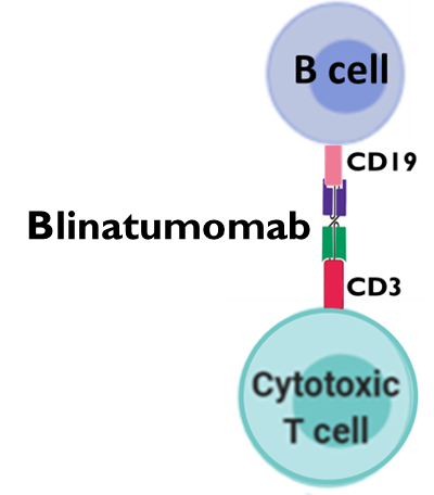 •A bi-specific antibody composed of 2 variable regions which recognise CD19 (B cell) and CD3 (CD8+ T cell )