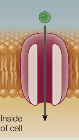 Transport proteins that form channels along the membrane that allows specific ions or molecules to pass through membranes. Think tunnels where only one thing can pass.