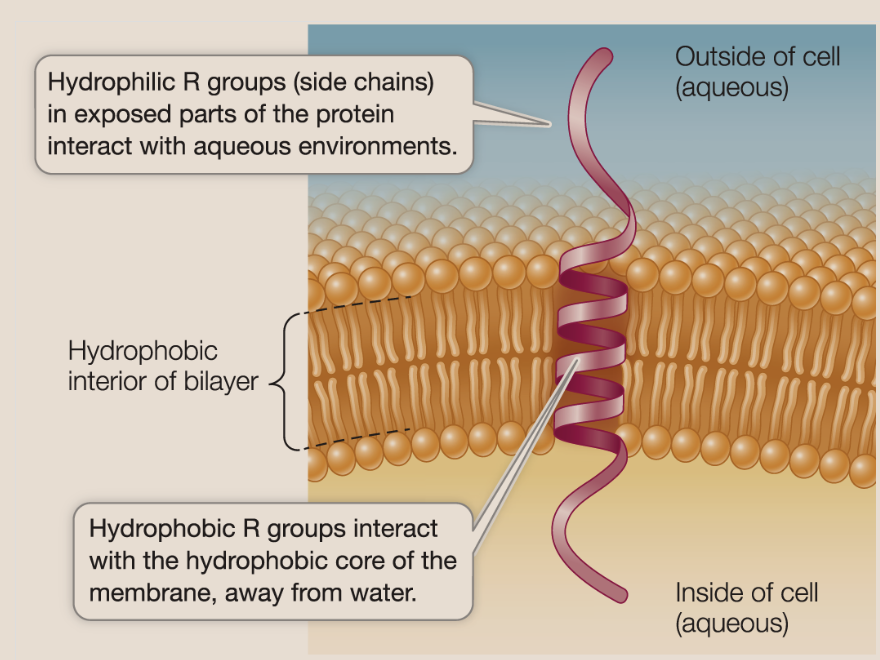 Proteins that are at least partly embedded within the lipid bilayer and often span the entire membrane — must have hydrophobic and hydrophilic regions