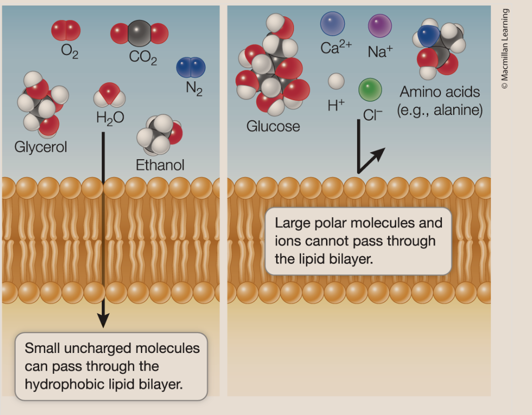smal molceules pass through the phospholipid bilayer — if a molcule is small a
