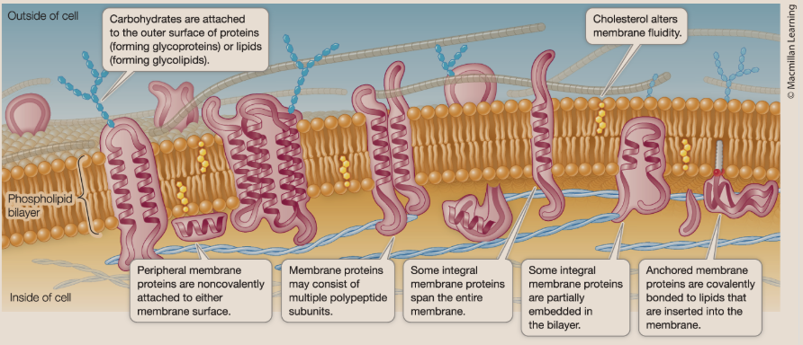 Integral proteins, peripheral proteins, and achored proteins