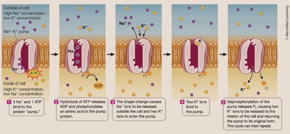 An active transport protein that maintains concentration gradients by pumping Na+ out and K+ into cells — this is an integral membrance glycoprotein. Thsi is a from of primary active transport— also an antiporter