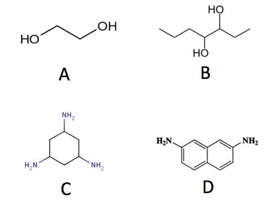 Which of these monomers, when used in a step-growth reaction, would definitely form a thermoset polymer?