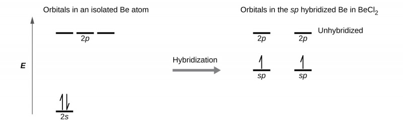 → Hybridization isn’t needed, because there’s no need to mix orbitals to make angled bonds.