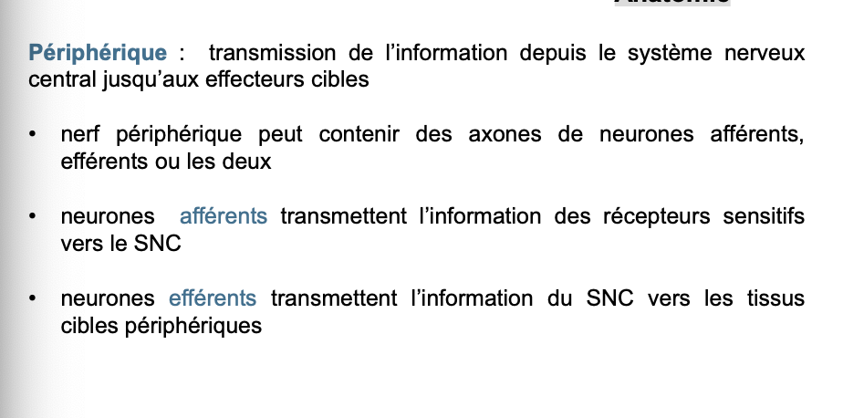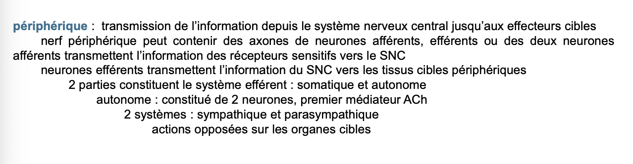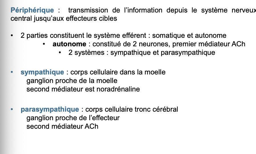 LâeffĂ©rent comprend somatique et autonome.