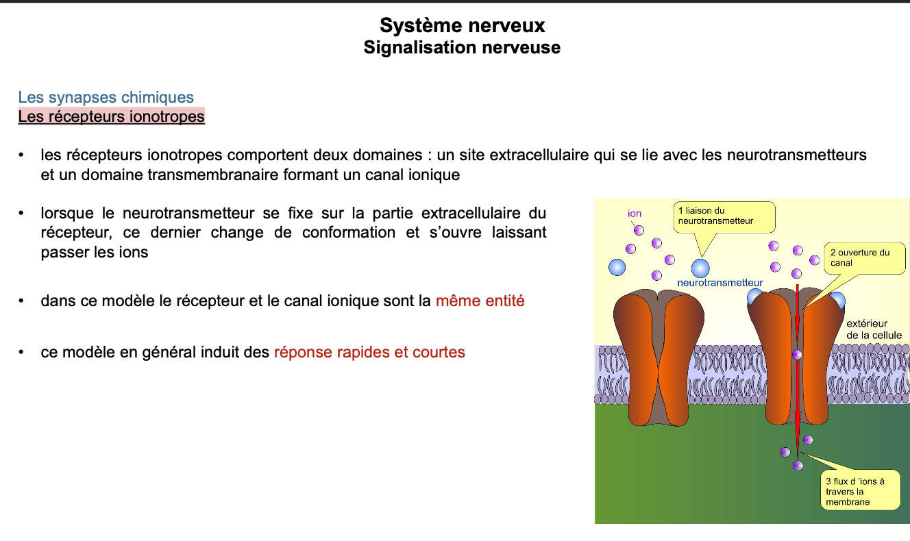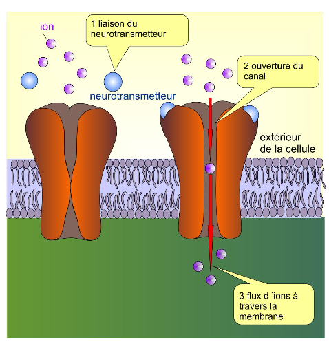 Les NT se fixent sur des rĂ©cepteurs postsynaptiques â ouverture/fermeture de canaux â PPSE (excitation) ou PPSI (inhibition).
