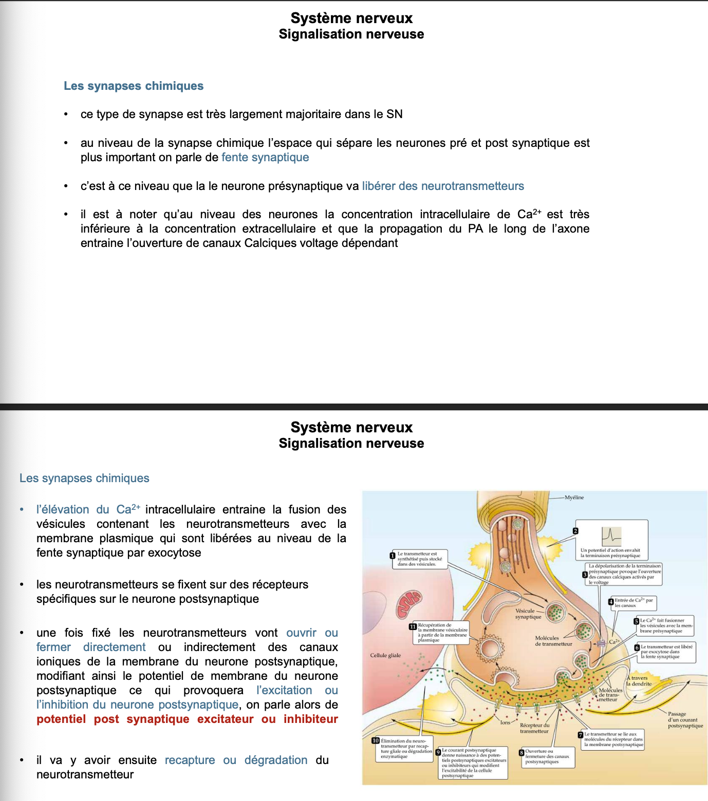S â Synapses chimiques : synthĂšse, transport(s), dĂ©gradation des neurotransmetteurs Questions (retranscrites)