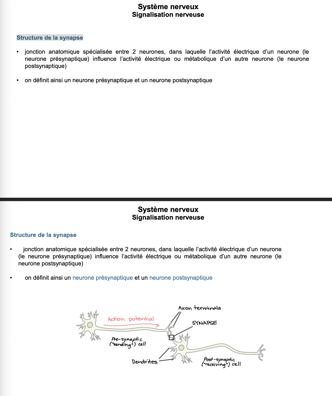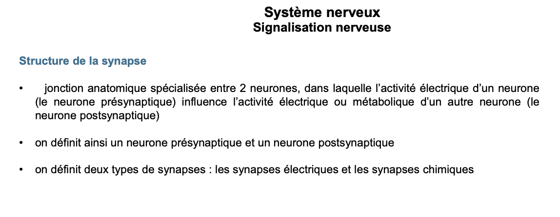 đč FLASHCARDS â SystĂšme nerveux : Structure de la synapse Questions (retranscrites)