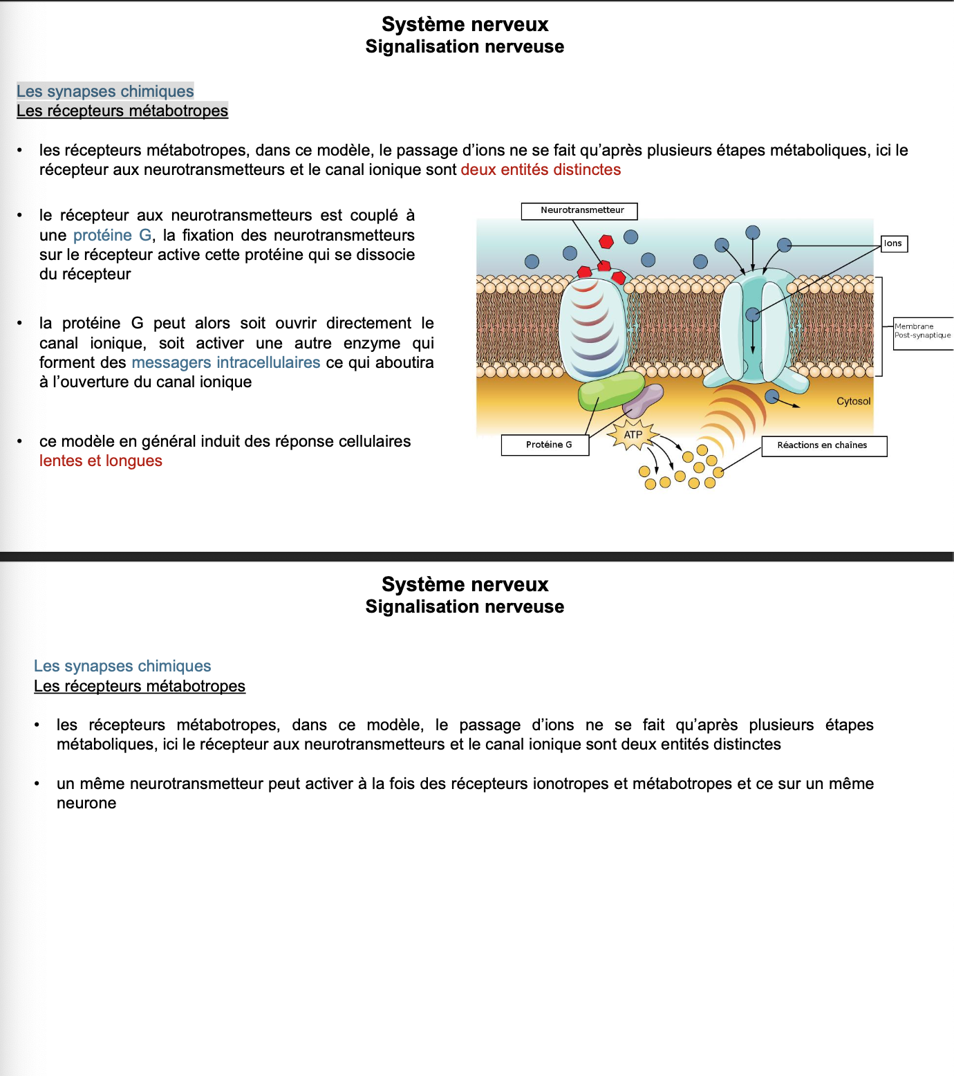 MĂ©tabotropes (GPCR) â voies G-protĂ©ines (modulation plus lente).
