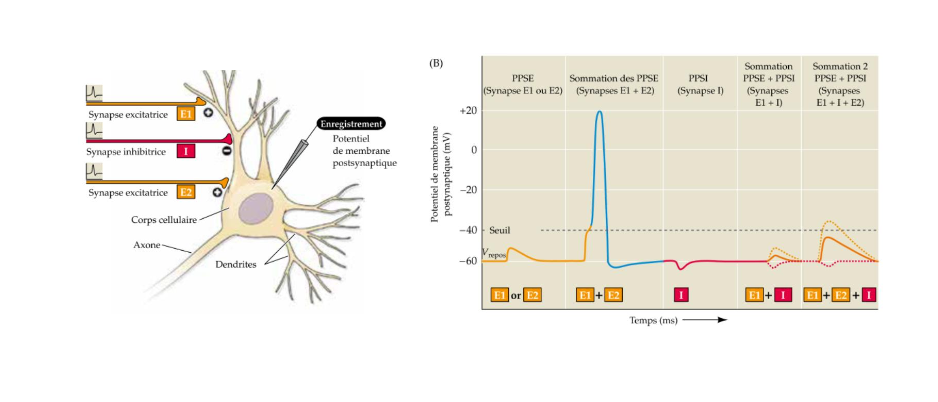 Les PPS (potentiels postsynaptiques) sâadditionnent : câest la sommation.