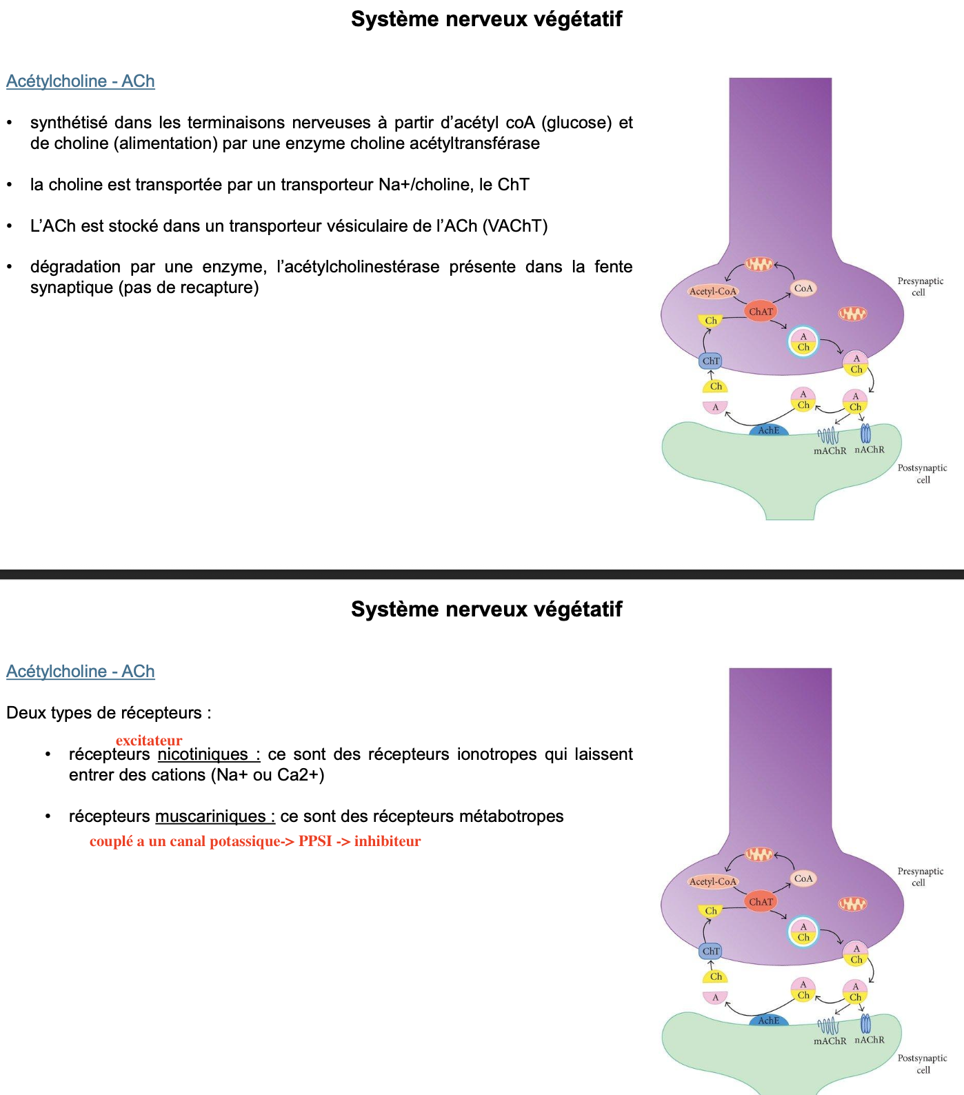 Autonome = 2 neurones en série, le 1er médiateur est ACh.