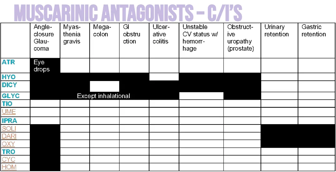 darifenasin, dicycloverine. ipratropium, tiotropium (inhalational) = 0