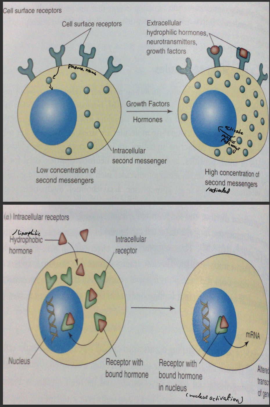 Hormones that bind to intracellular receptors (Steroid hormones + Thyroid hormones)