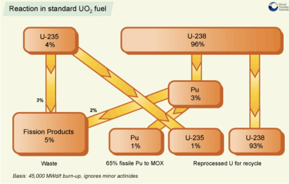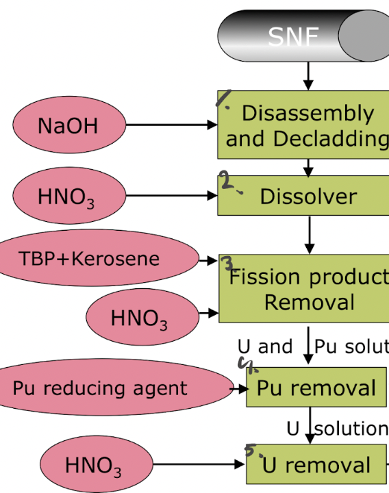 Separate through PUREX (Plutionium Uranium Recovery by Extraction)