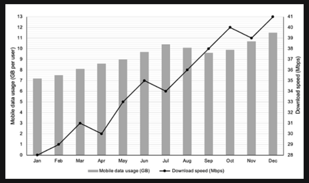 Martha tracks her mobile data usage and download speed, recording them in the chart below.