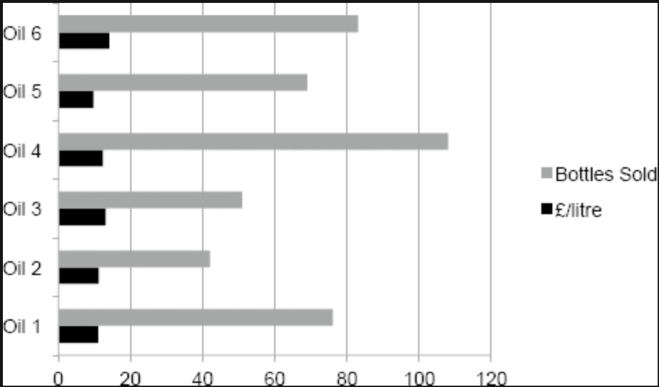 A shop in north London specialises in Mediterranean foods. The graph shows the breakdown in sales of six types of olive oil in a recent month.