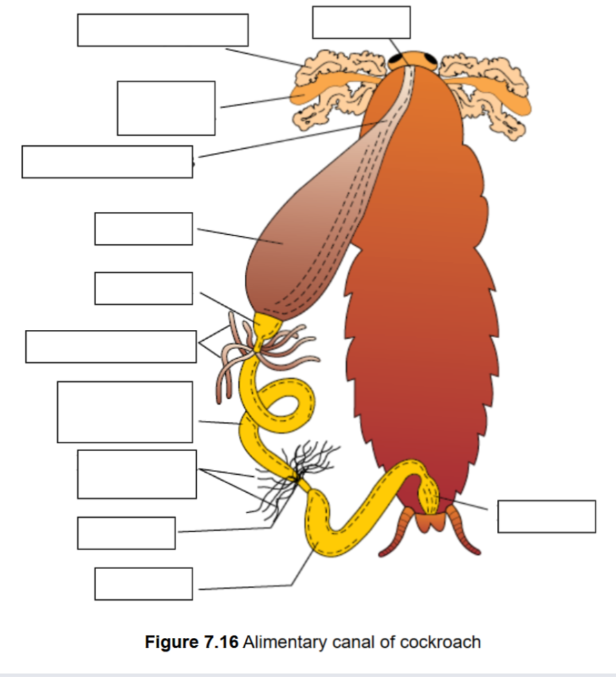 This is followed by the mesenteron, marked anteriorly by finger-like gastric caeca and posteriorly by hair-like ______________.