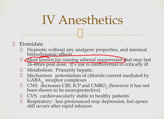 Etomidate key effects