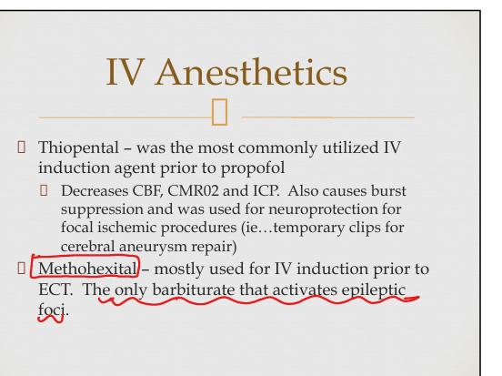 Barbituate, activates epileptic foci(stimulatory) and is used in ECT