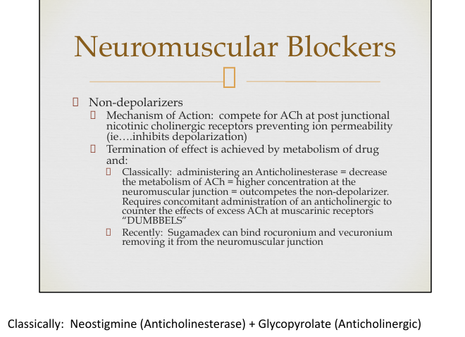 Neostigmine + glycopyrrolate OR Sugammadex (for roc/vec).