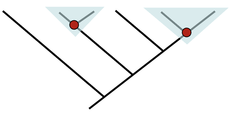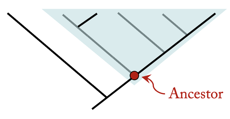 Branch points are called nodes, and represent most recent common ancestors
