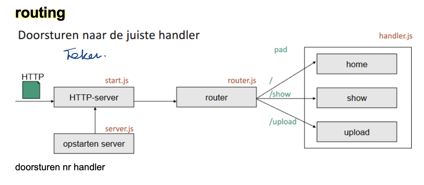server met onderlinge eventloop → afhandelen binnen eventloop → dispatches → functionele endpoints