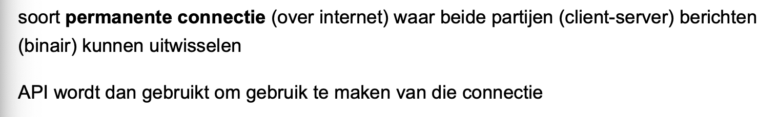 websocket protocol: bepaald de structuur van de berichten die worden uitgewisseld en welke uitgewisseld worden