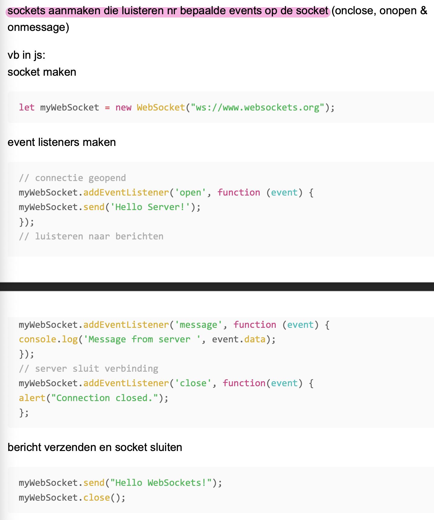 → event loop: alles dat kan uitgevoerd worden komt in event queue en worden dan 1 voor 1 uitgevoerd