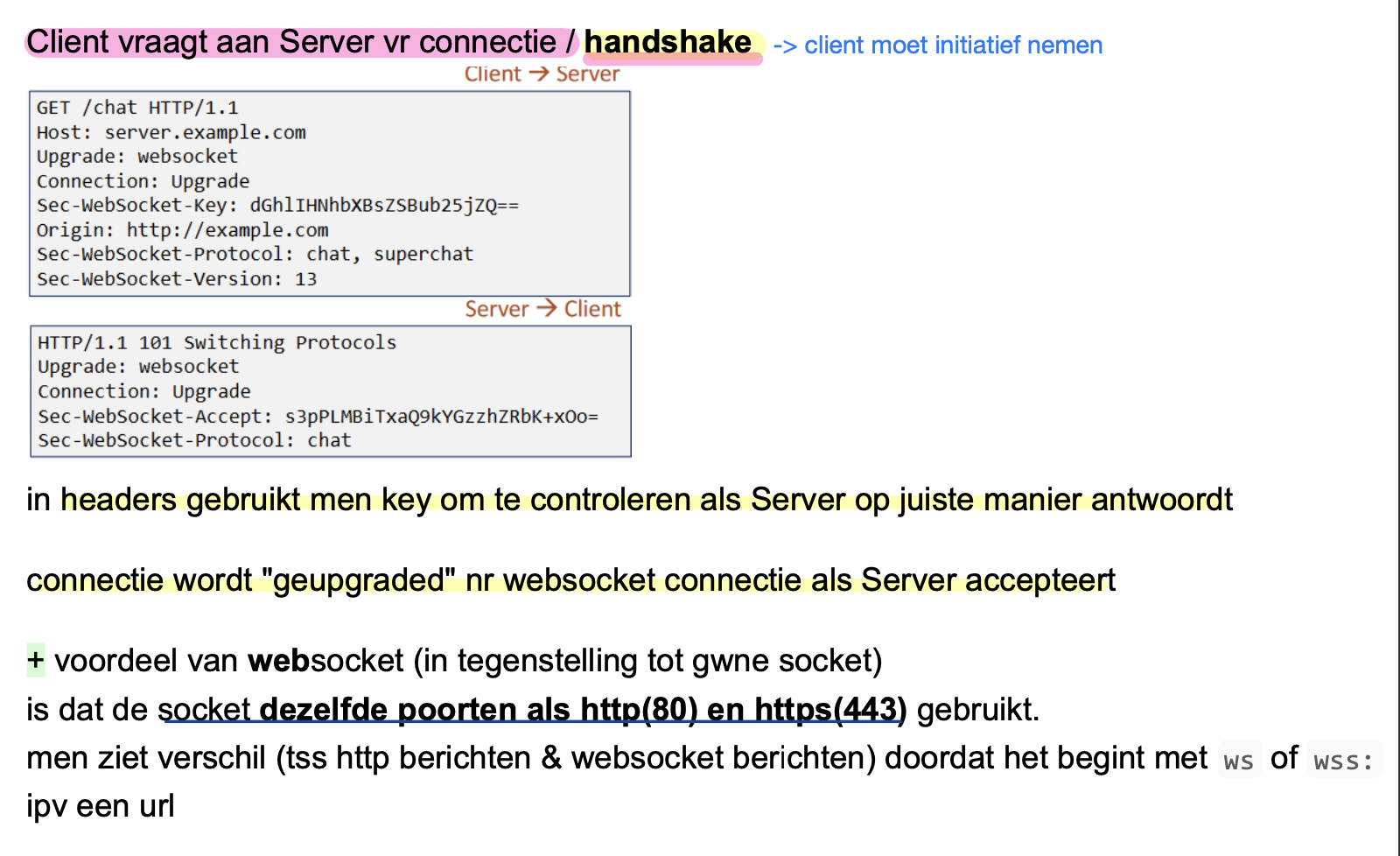 verbinding opzetten tussen client en server en zo communiceren: via poorten van http protocol