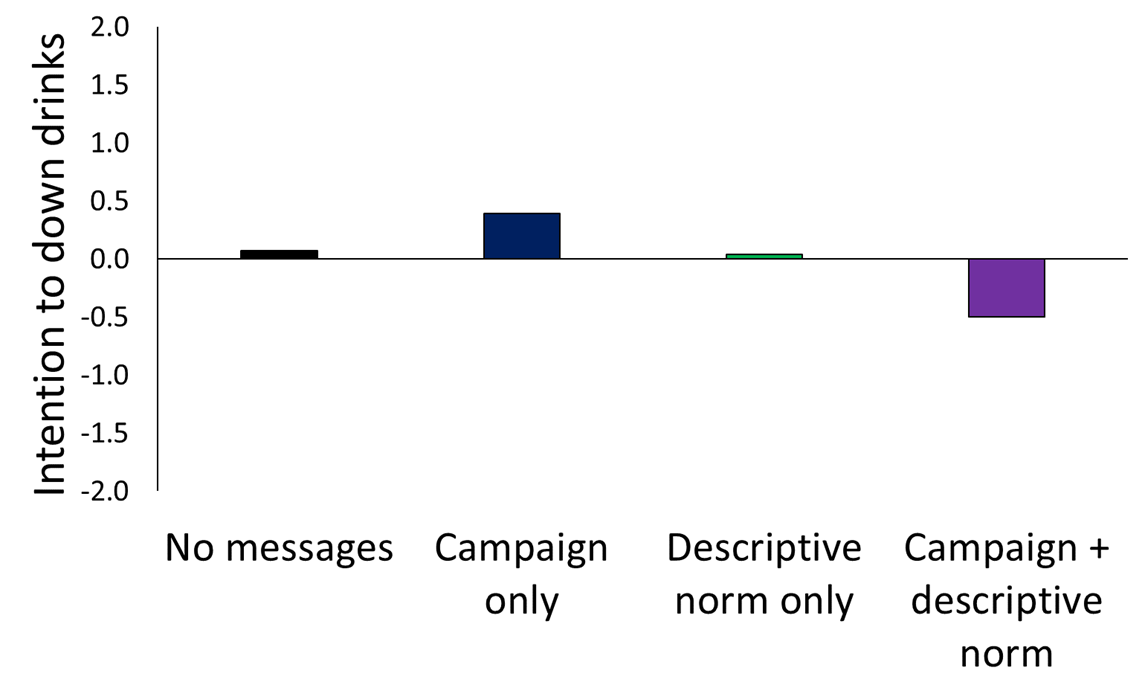 -campaign + descriptive norm messaging reduced intentions to down drinks in students