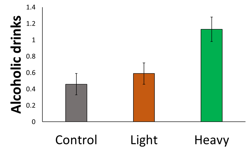 -participants in the heavy condition consumed significantly more alcohol compared to participants in the control and light drinking conditions