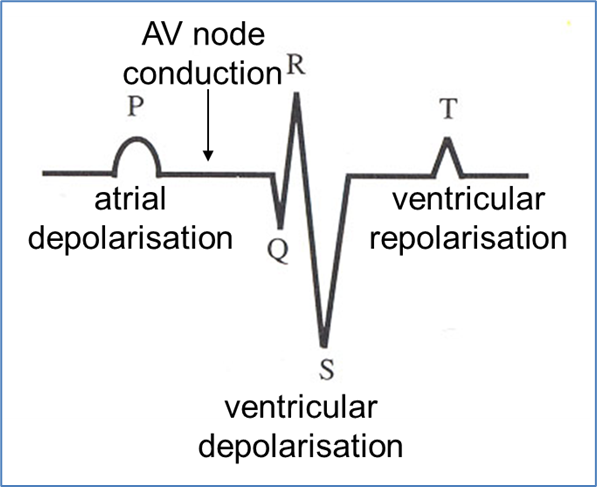 Depolarisation, systole (contraction) —> AV valves shut, semi-lunar valves open