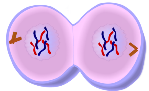 chromosomes uncondense back to chromatin, 2 nuclei begin to reform, spindles break down, cytokinesis begins