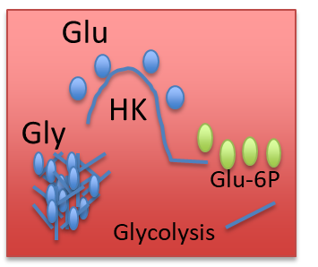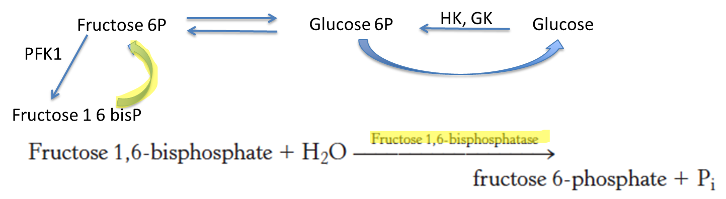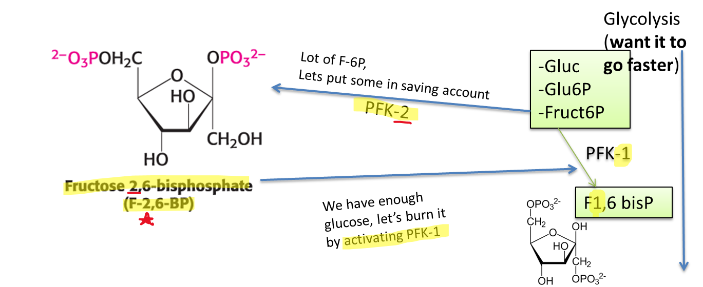 Once plenty of fructose 6-phosphate is made, it creates PFK-2 to be saved until enough glucose has been made, then activating PFK-1 to make the process of glycolysis go much faster