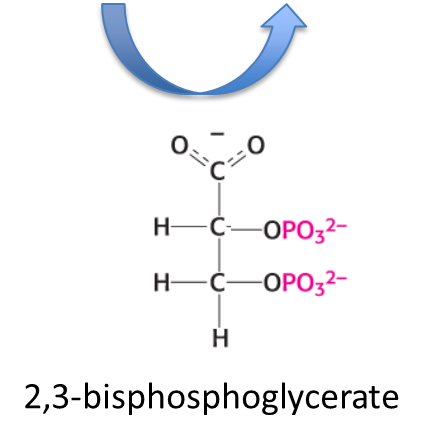 Binds to hemoglobin and decreases its affinity of hemoglobin to Oxygen