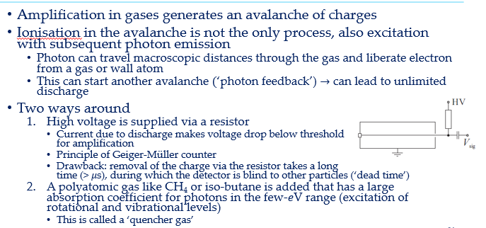 Inorganic scintillators => much more dense, so stop particles in short distance but they are slower (due to time required for thermalisation of charge carriers.